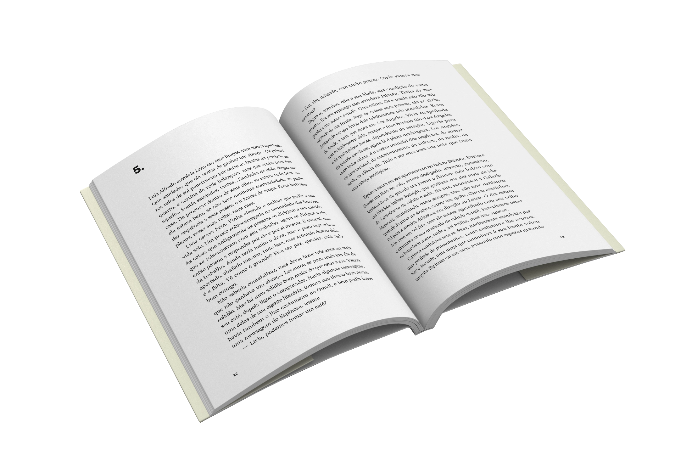 Não à toa, um dos personagens no livro do ano passado é o famoso delegado de Copacabana, imortalizado nas obras de Luiz Alfredo. Desta vez, Espinosa conhece Livia (em versão ficcional) e se apaixona por ela. Ao mesmo tempo, o personagem está às voltas com o bandido Dodô e seus comparsas, delegacia, mulheres, livros (mais sebos), comida congelada (em especial, lasanha) e a vida noturna do Rio de Janeiro.