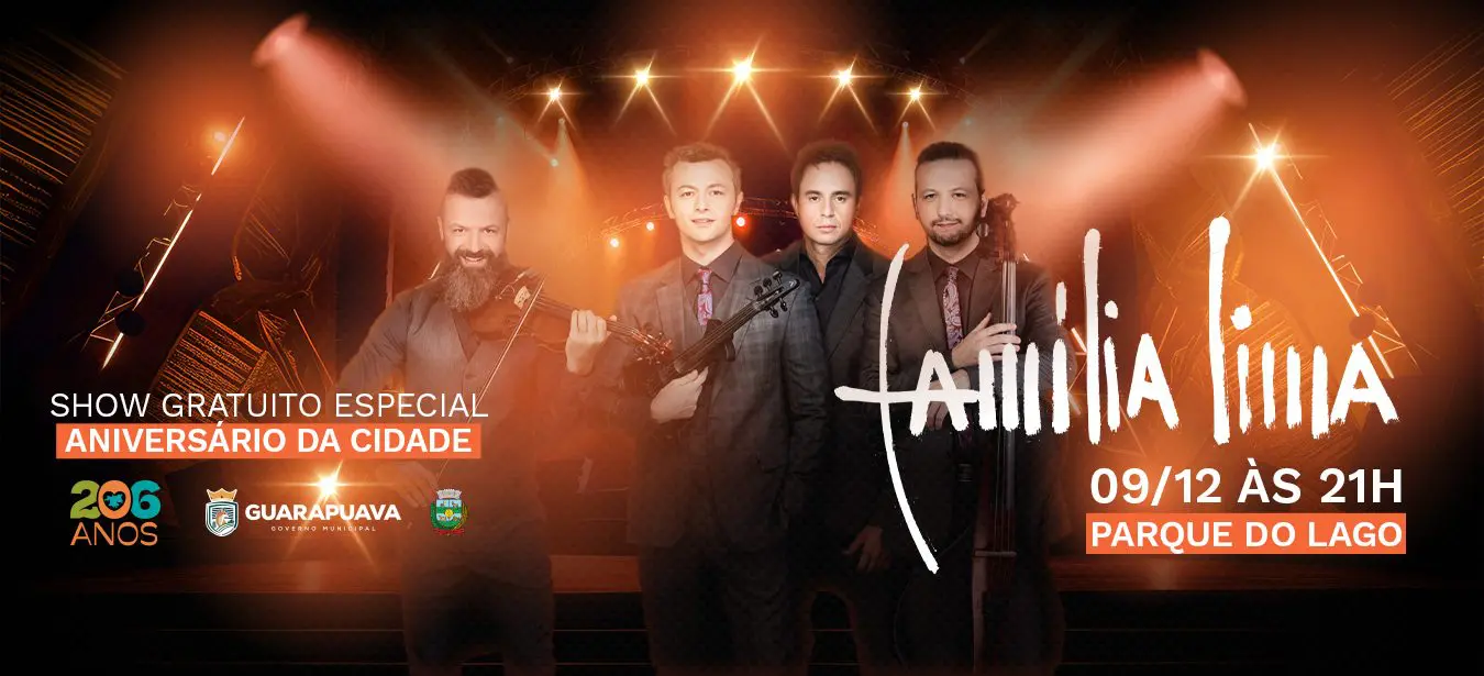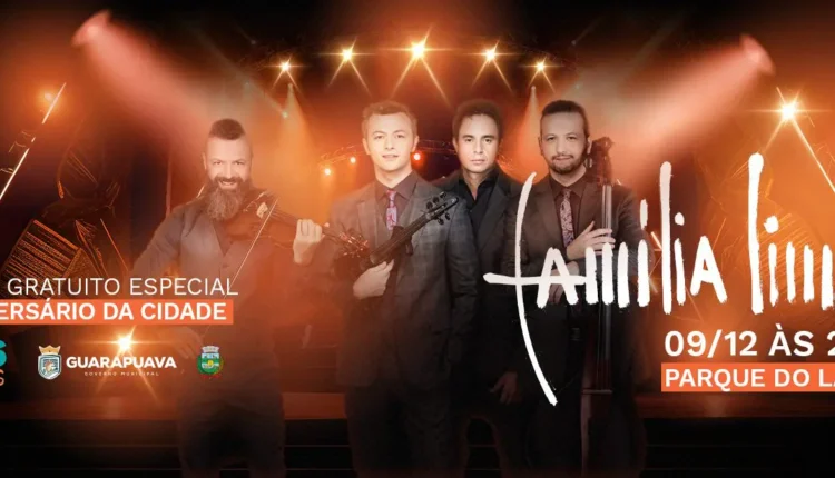 A Prefeitura de Guarapuava promove, no próximo dia 9 de dezembro, um show especial e gratuito em comemoração aos 206 anos do município. A atração principal será a renomada Família Lima, grupo reconhecido por sua originalidade ao combinar música erudita, pop e arranjos instrumentais contemporâneos.
