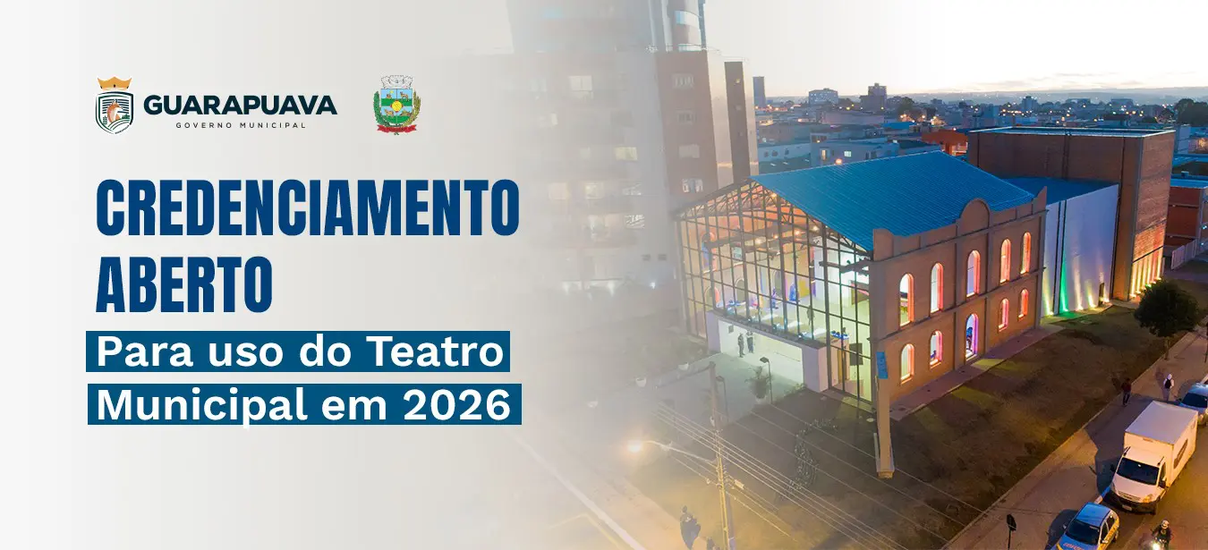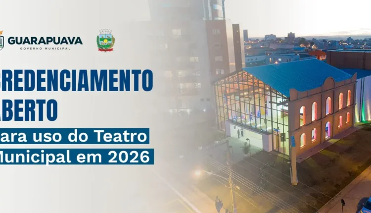 A Prefeitura de Guarapuava, por meio da Secretaria Municipal de Cultura, publicou o Edital nº 002/2025, que dispõe sobre a abertura do prazo para credenciamento de propostas de uso do Teatro Municipal Marina Karam Primak durante o ano de 2026. O edital é voltado a grupos artísticos, companhias, produtores culturais e escolas de artes, abrangendo áreas como teatro, dança, música e demais segmentos culturais.