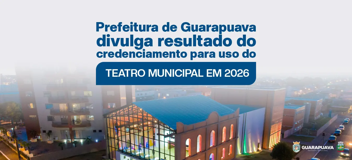 A Prefeitura de Guarapuava, por meio da Secretaria Municipal de Cultura, publicou o resultado do credenciamento para utilização do Teatro Municipal Marina Karam Primak durante o ano de 2026. A lista oficial das propostas deferidas está disponível no Boletim Oficial nº 3349, que pode ser acessado no site da Prefeitura, AQUI.
