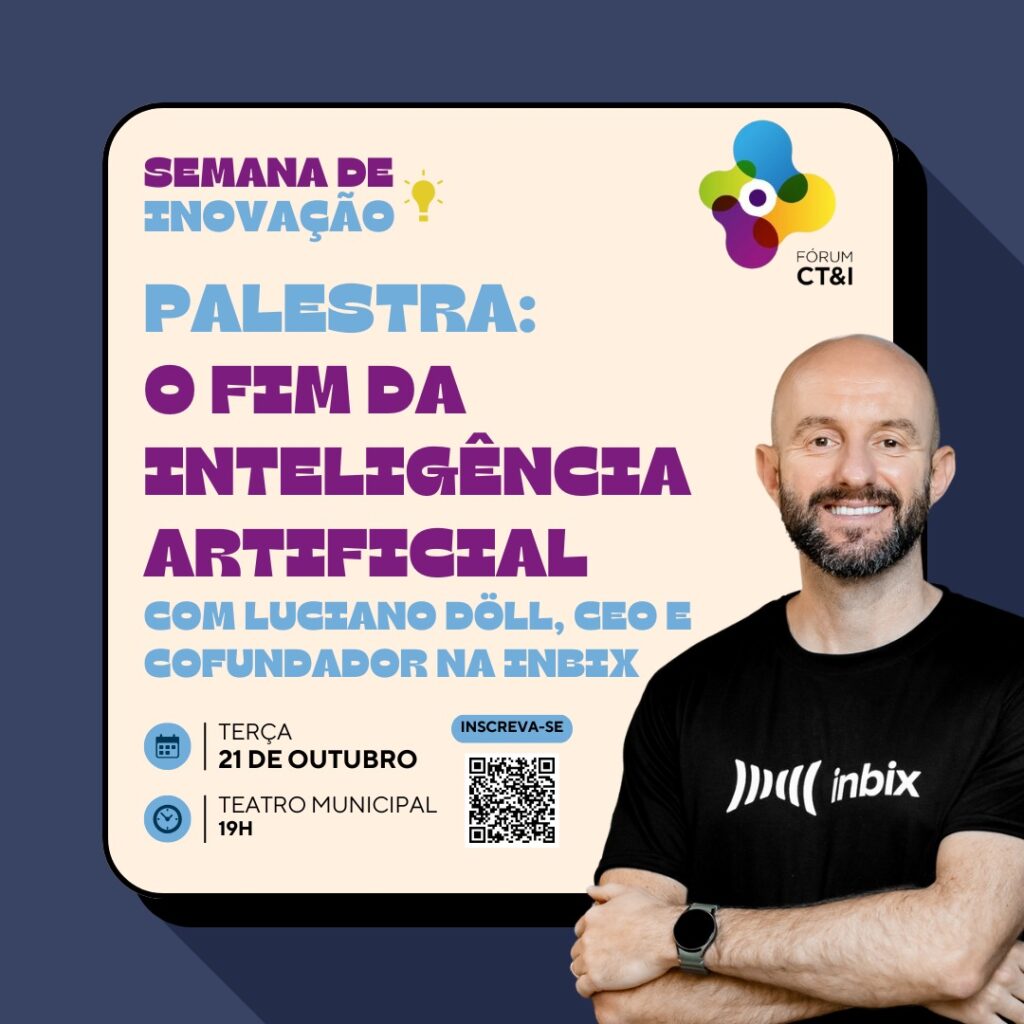 A Inteligência Artificial está com os dias contados? Ou será que ela se tornará tão presente que deixará de ser um tema à parte? Essa é a provocação central da palestra: “O fim da Inteligência Artificial”, que será ministrada por Luciano Döll, CEO e cofundador da Inbix, no dia 21 de outubro, às 19h, no Teatro Municipal Marina Karam Primak, em Guarapuava.