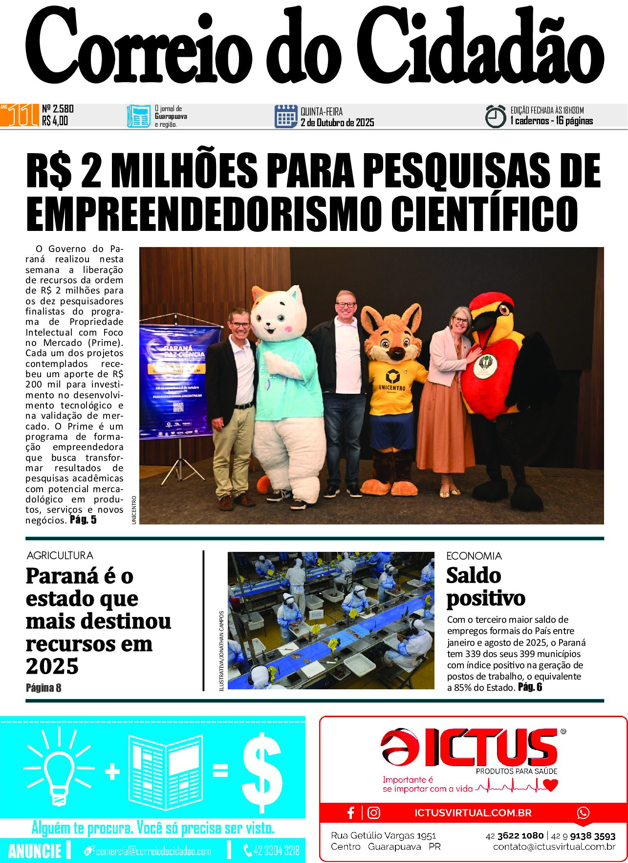 Publisher - O Correio do Cidadão é um jornal impresso e online. Apresentamos notícias de Guarapuava e dos municípios da região.