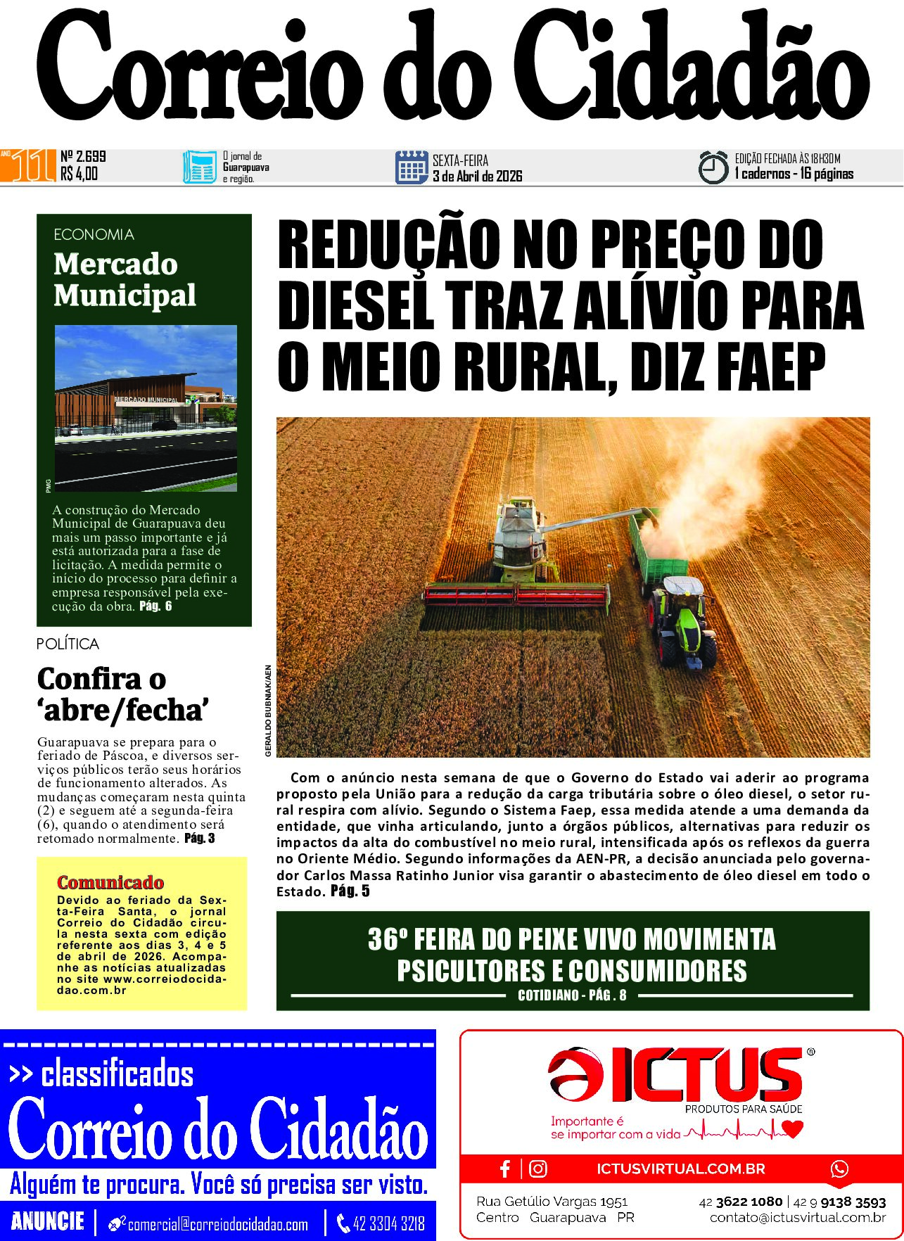 Publisher - O Correio do Cidadão é um jornal impresso e online. Apresentamos notícias de Guarapuava e dos municípios da região.