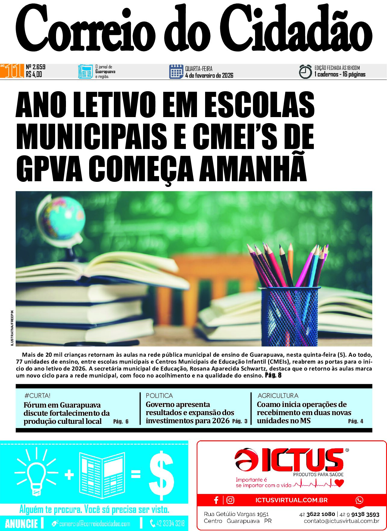 Publisher - O Correio do Cidadão é um jornal impresso e online. Apresentamos notícias de Guarapuava e dos municípios da região.