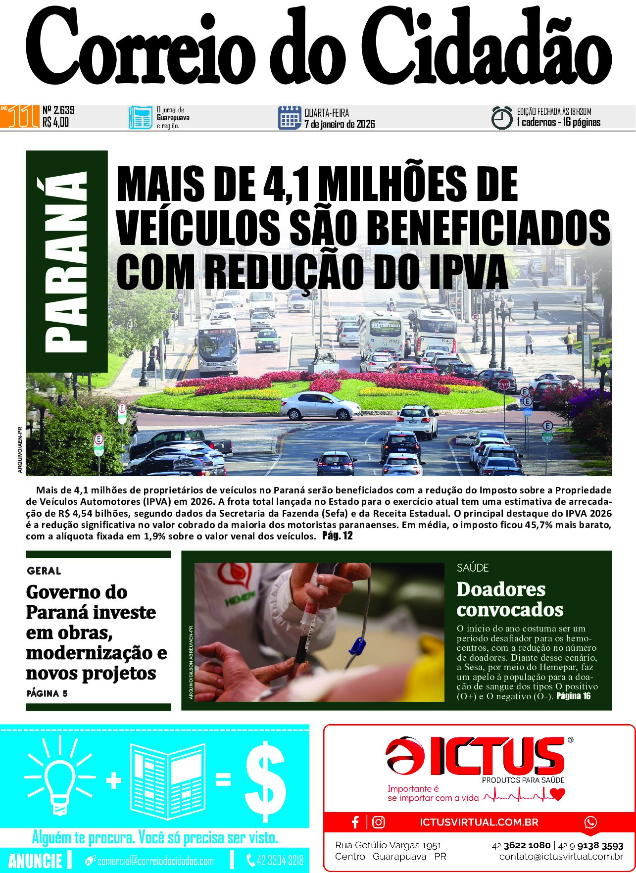 Publisher - O Correio do Cidadão é um jornal impresso e online. Apresentamos notícias de Guarapuava e dos municípios da região.