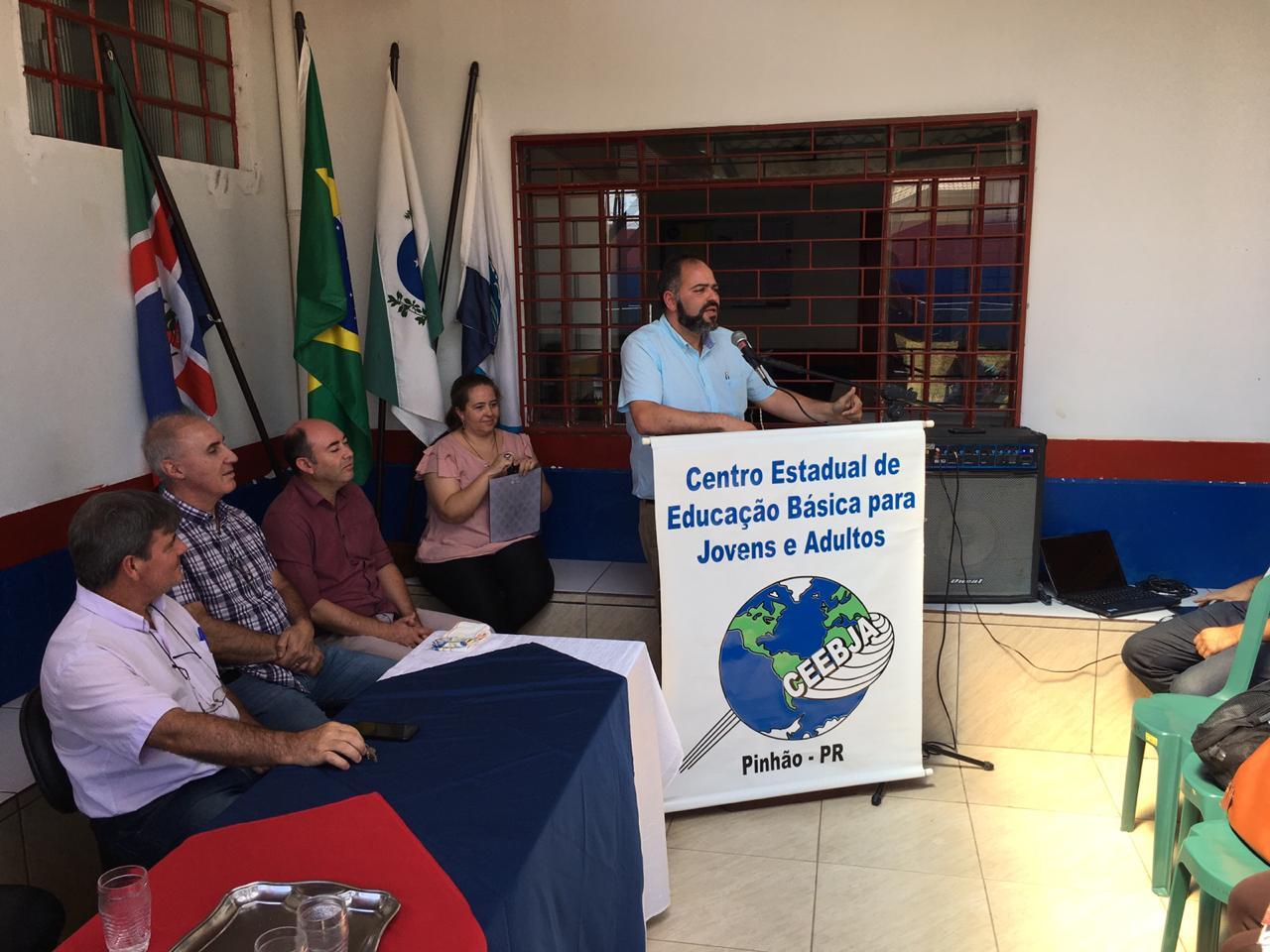 O deputado Artagão Júnior esteve em Pinhão, nesta quinta-feira (12), para participar do evento de lançamento das obras de ampliação do Centro Estadual de Educação Básica para Jovens e Adultos (Ceebja).