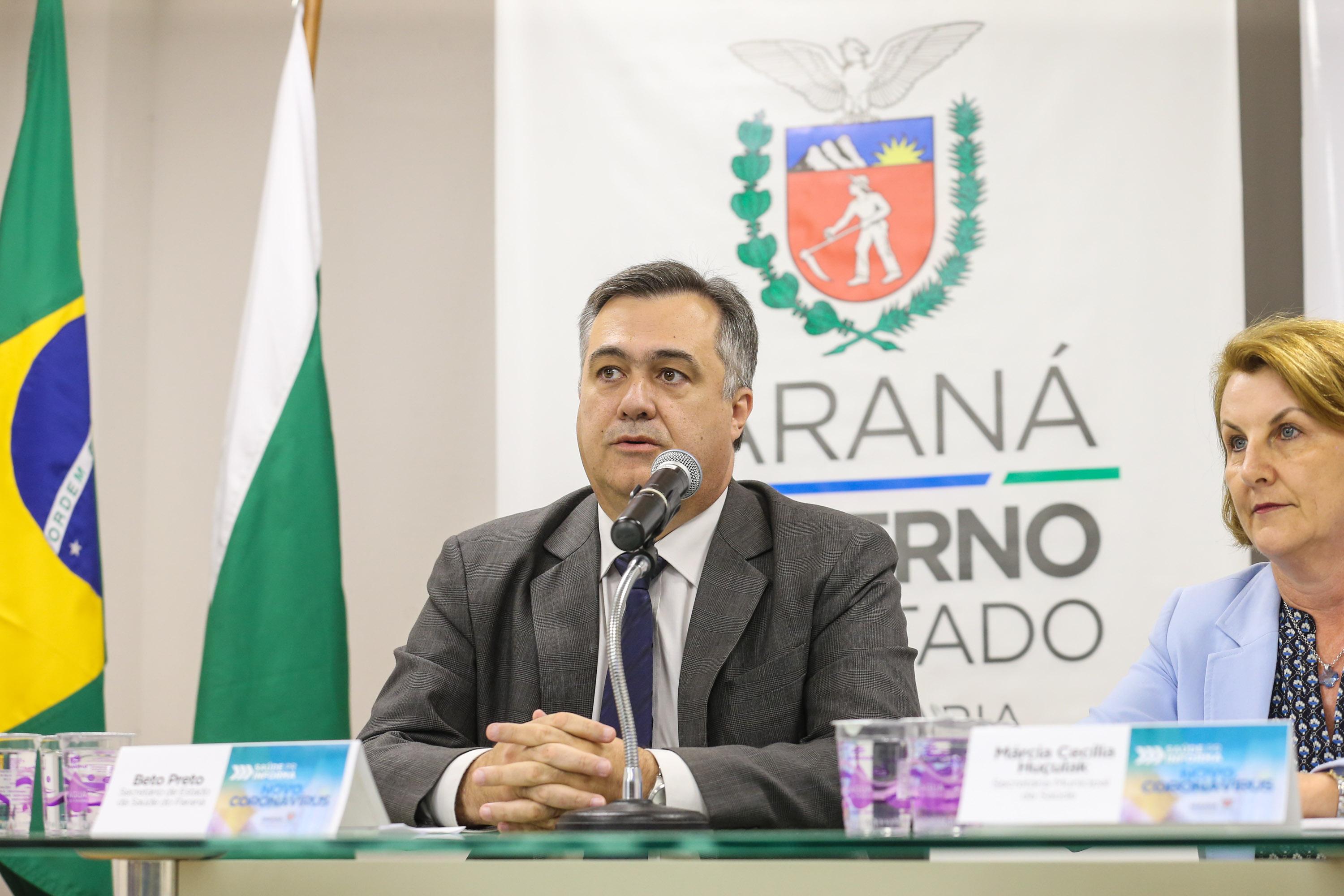 O secretário de Estado da Saúde Beto Preto informou nesta quinta-feira (12), durante entrevista coletiva, que o Paraná tem seis casos de coronavírus confirmados. Cinco pessoas residem em Curitiba e uma em Cianorte, na Região Noroeste.