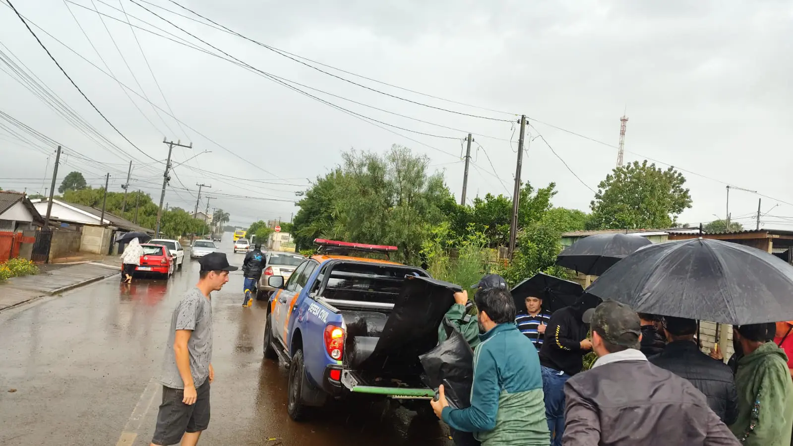 As equipes estão atuando desde as primeiras horas da tarde, com foco na assistência direta às famílias, realizando entrega de lonas e outros materiais emergenciais.